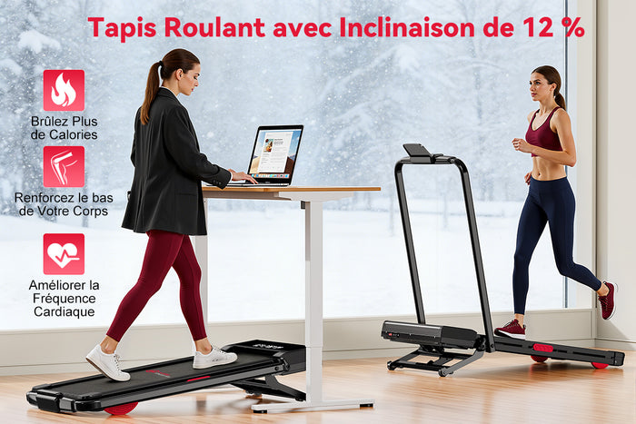 Tapis de Course Pliant Y3 avec Moteur sans Balais, Inclinaison Automatique de 12 %