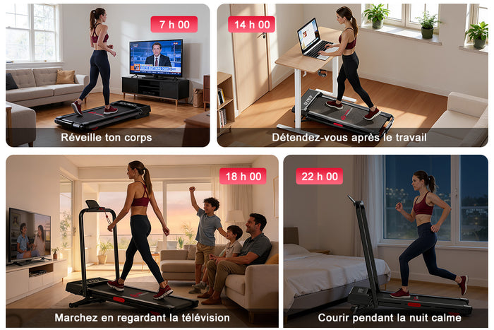 En général, le sol moquetté est épais et moelleux, ce qui affecte la dissipation de la chaleur du tapis de course. Dans ce cas, vous pouvez placer le tapis entre le tapis de course et la moquette pour une utilisation normale.