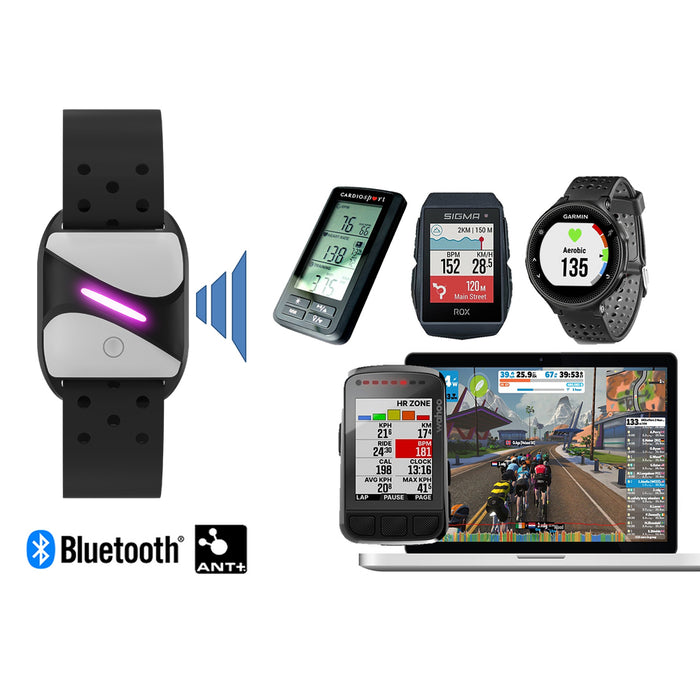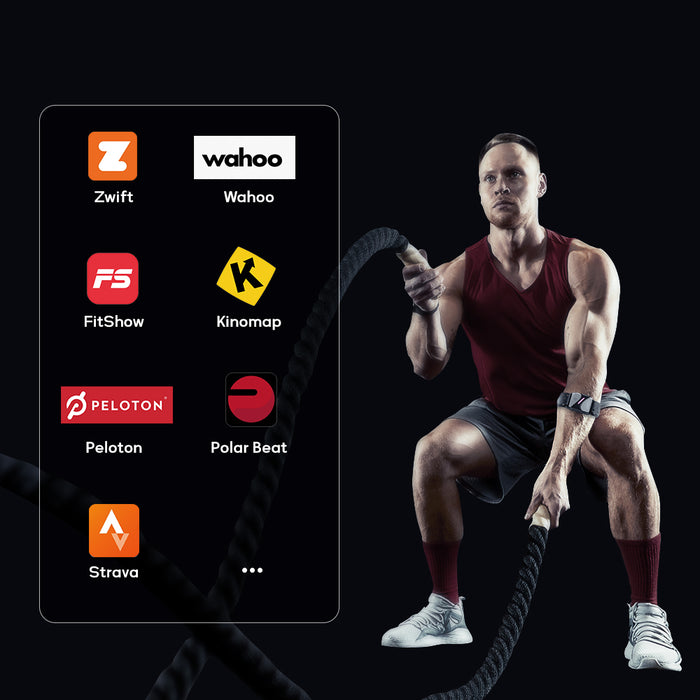 Fonctionne avec plus de 200 applications populaires de suivi de la fréquence cardiaque comme Zwift, Wahoo, FitShow, Kinomap, Peloton, Polar Beat, Strava et bien d'autres.